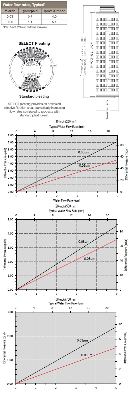 Parker Chemflow®-PE Select Cartridge Specifications: