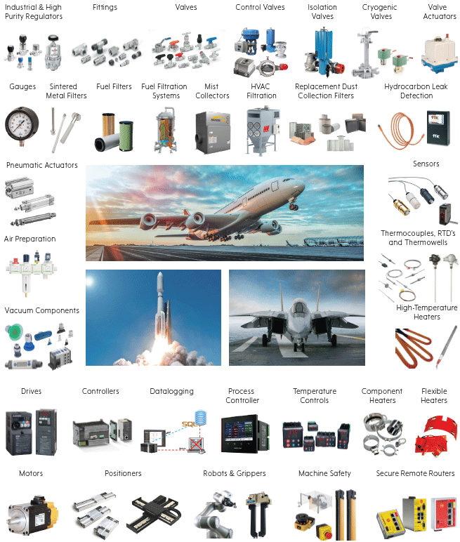 Valin® Corporation is your total solution provider of process valves, instrumentation, filtration, heating, controls, and automation products. We understand your industry and needs for consistent quality & performance, meeting regulations, improving time-to-market, and continued serviceability with field support. Our technical knowledge and market expertise, matched with our value-added service capabilities, make us the comprehensive solution provider for the Aerospace Industry.