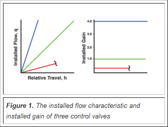 In order to get good control with stability throughout the full range of required flow rates, one must use a control valve that has an installed flow characteristic that is linear, or at least as close to linear as possible in most systems. This was discussed in detail in Part I of this series in the February issue (pages 29-32). It is often difficult to compare the control capability of two valves with less than perfectly linear installed characteristics by simply studying their installed characteristic graphs, and one can learn more about how well they will control a particular system by examining their installed gain.