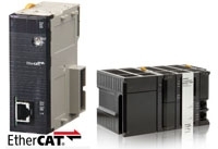 The NJ solution harmonizes motion, vision and logic control in one compact unit. Networking with peripheral devices, like one of the eight G5 Series servo drives, NS Programmable Terminal, or five MX-2 Inverters is made simple with a quick-connect EtherCAT cable; decreasing wiring requirement and time of installation. In addition, Sysmac Studio offers an innovative interface with accessible PLC function blocks for programming in both simulated and real time environments.