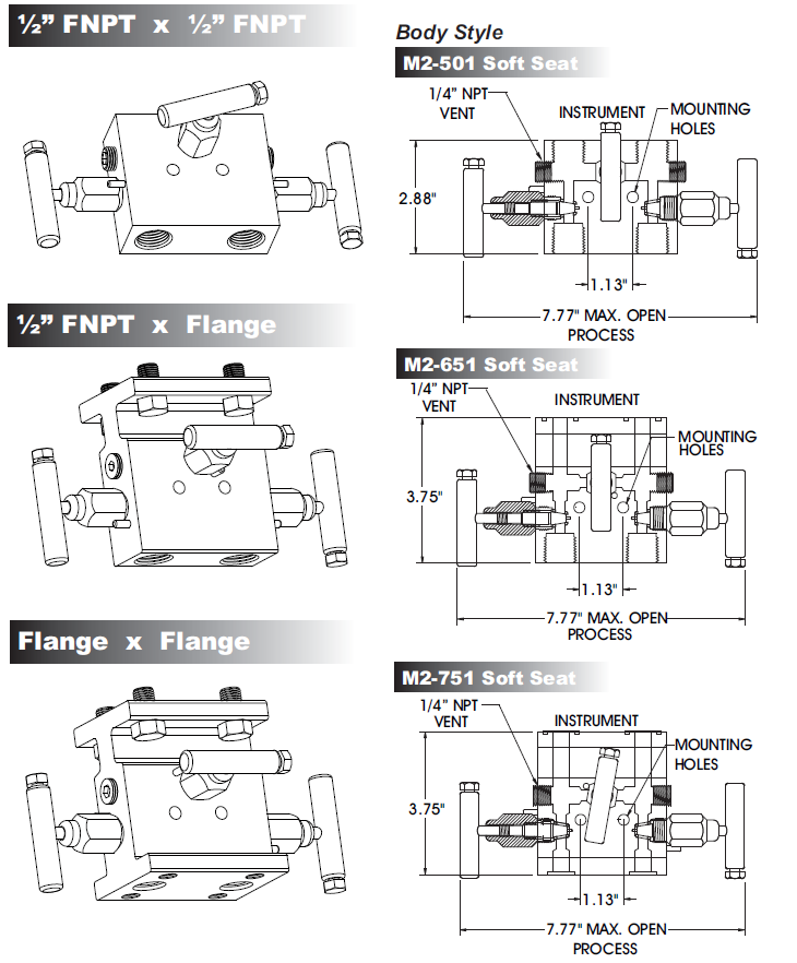 Parker Three-Valve Manifolds .250" Orifice Options: