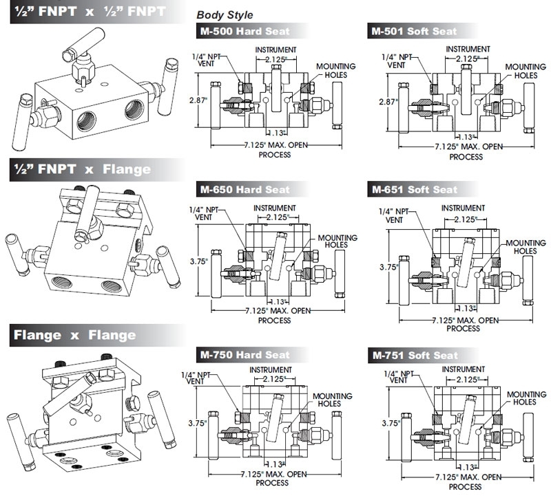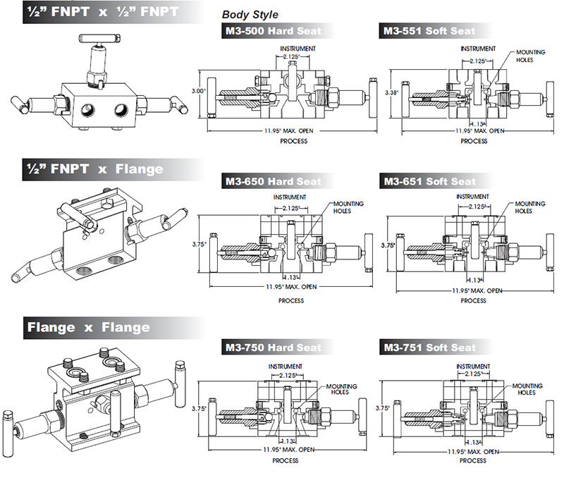 Parker Three-Valve Manifolds .375" Orifice Options: