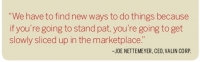 With such a large percentage of Valin's income tied to shrinking revenue streams, Nettemeyer looked for ways to create new sources of income - and quickly. Acquisitions would allow the company to efficiently diversify its portfolio and grow new business lines.