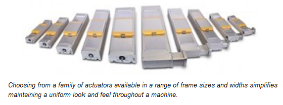 Does the actuator you're investigating offer multiple frame sizes or widths to select from? Having a number of different sizes to select from is beneficial for several reasons. To some extent, product price is proportional to size. If your application is too big for one product, you can find yourself jumping to a product that's 'overkill' for the requirements. Having a family of products to select from allows you to cost-optimize the project. In addition, many multi-axis applications require different loading for each axis. Assuming you dont want to overpay for an axis to maintain a uniform look and feel throughout the machine, selecting from a manufacturers family of actuators is typically the best way to maintain consistency.