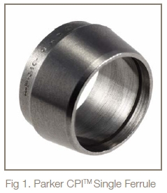 This article discusses the evolution of ferrule design and hardening technology, using the example of the Parker Hannifin CPI™ single ferrule compression fitting (Fig 1), but the basic principles also apply to two ferrule compression fittings, such as Parker Hannifin's A-LOK®, as well as the high pressure design.
