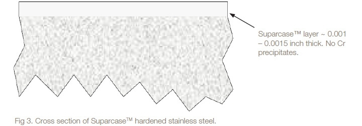The Suparcase™ hardened layer is continuous, free of defects and voids. This is shown diagrammatically in Figure 3.